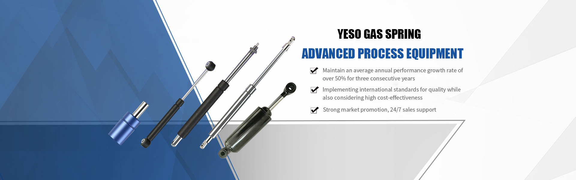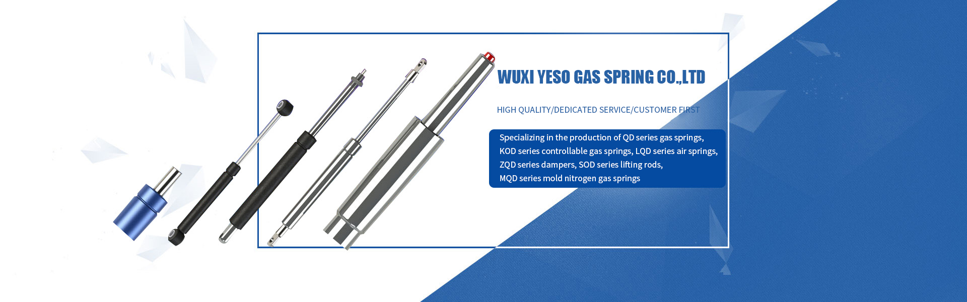 Our company was founded in 1989 and entered the gas spring industry in 2003. It was formerly known as "Wuxi Hengda Pneumatic Plastic Parts Factory" and was renamed "Wuxi Yeso Gas Spring Co., Ltd." in 2020 to better suit the business nature of the enterprise. The company is located in Wuxi, a land of fish and rice on the bank of the Taihu Lake Lake and one of the birthplaces of China's national industries. The factory is close to Shanghai Nanjing Expressway, Shanghai Yichang Expressway and 312 National Highway, with developed logistics and convenient transportation.